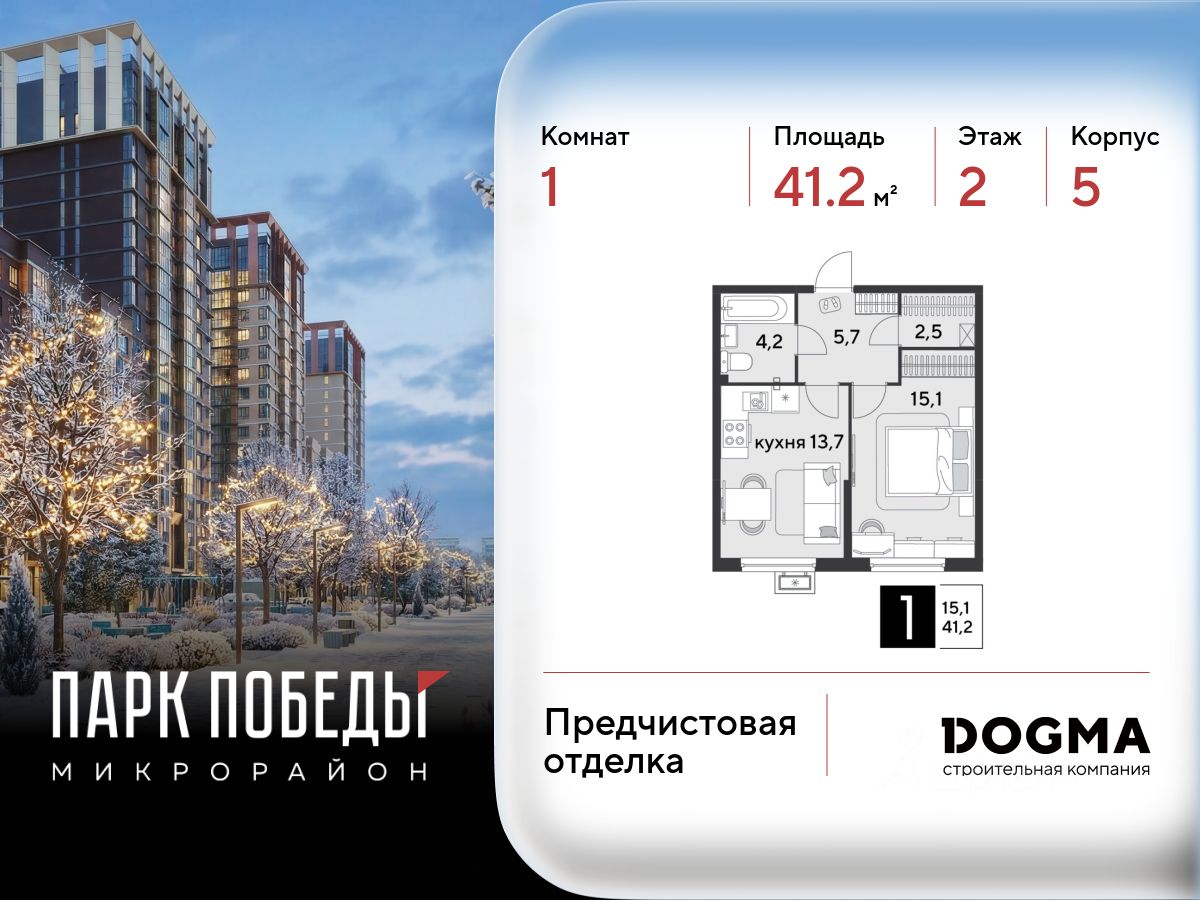 В продаже 1-комнатная квартира от застройщика! ЖК "Парк Победы 2", г. Краснодар, Литер 5