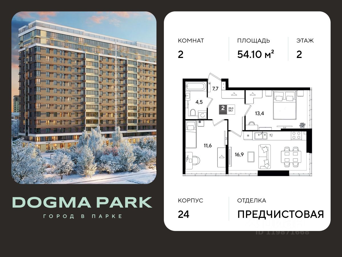 В продаже 2-комнатная квартира от застройщика! Мкр. "ДОГМА ПАРК" г. Краснодар, Литер 23 Срок сдачи: 2 кв. 2027, общей площадью 54.10 кв.м., на 2 этаже.