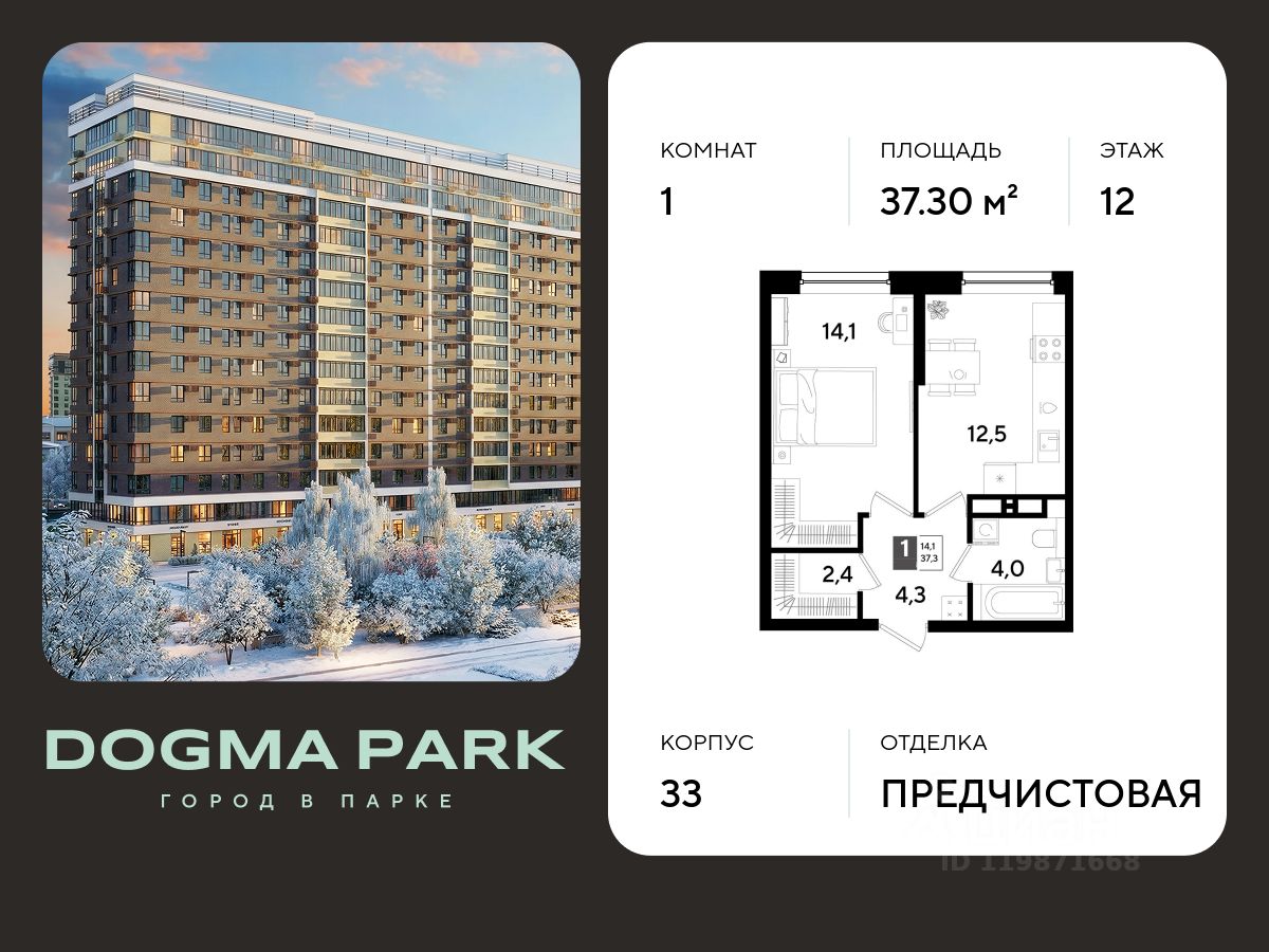 В продаже 1-комнатная квартира от застройщика! Мкр. "ДОГМА ПАРК" г. Краснодар, Литер 33 Срок сдачи: 2 кв. 2027, общей площадью 37.30 кв.м., на 12 этаже.