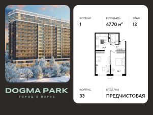 В продаже 1-комнатная квартира от застройщика! Мкр. "ДОГМА ПАРК" г. Краснодар, Литер 33 Срок сдачи: 2 кв. 2027, общей площадью 47.70 кв.м., на 12 этаже.