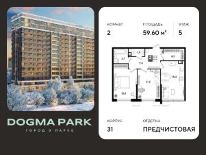 В продаже 2-комнатная квартира от застройщика! Мкр. "ДОГМА ПАРК" г. Краснодар, Литер 18 Срок сдачи: 2 кв. 2027, общей площадью 59.60 кв.м., на 5 этаже.