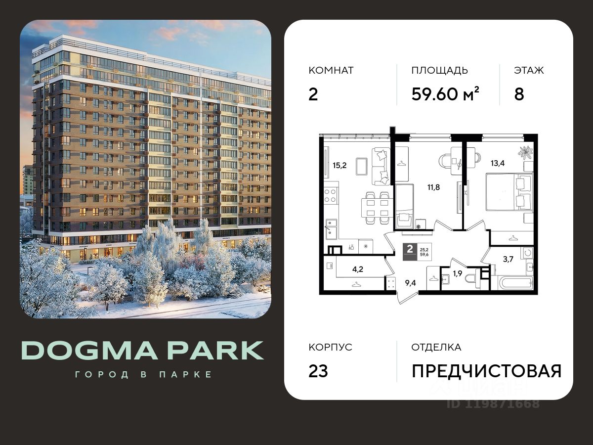 В продаже 2-комнатная квартира от застройщика! Мкр. "ДОГМА ПАРК" г. Краснодар, Литер 22 Срок сдачи: 2 кв. 2027, общей площадью 59.60 кв.м., на 8 этаже.