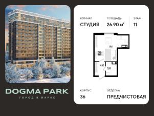 В продаже квартира-студия от застройщика! Мкр. "ДОГМА ПАРК" г. Краснодар, Литер 36 Срок сдачи: 2 кв. 2027, общей площадью 26.90 кв.м., на 11 этаже.