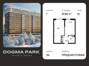 В продаже 1-комнатная квартира от застройщика! Мкр. "ДОГМА ПАРК" г. Краснодар, Литер 36 Срок сдачи: 2 кв. 2027, общей площадью 37.80 кв.м., на 12 этаже.