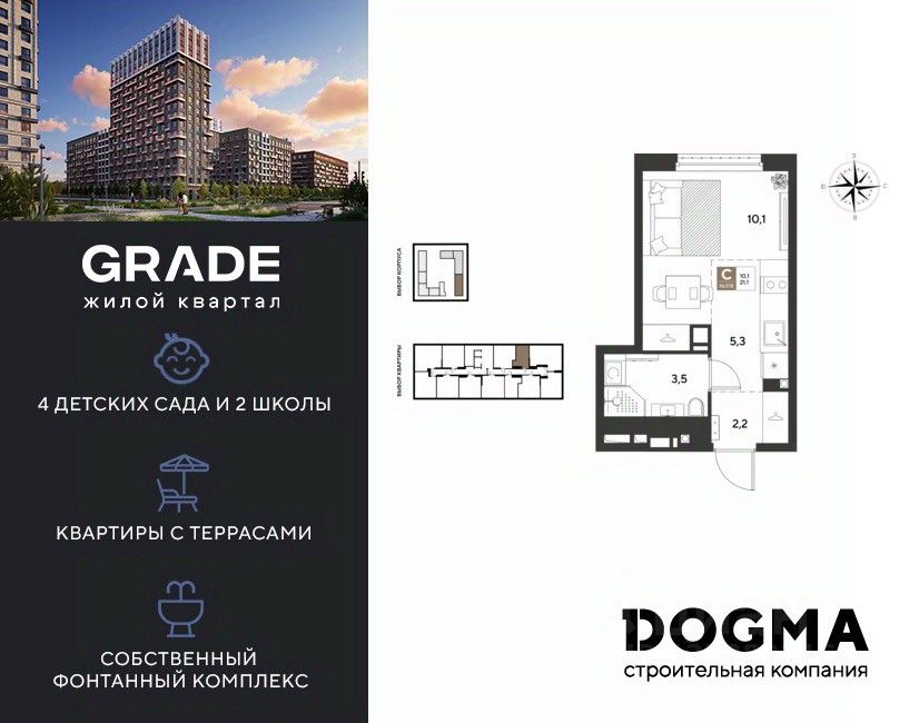В продаже квартира-студия от застройщика! ЖК GRADE г. Краснодар, Литер 15