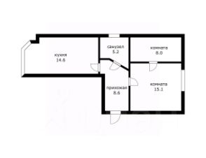 Кухня увеличена за счет балкона - 14,6 м2, просторная комната 15,1 м2 и вторая комната 8 м2. Санузел совмещенный.