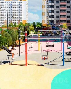 -Закрытая безопасная территория;-Два многоуровневых паркинга (479 и 481 машиноместо);-Благоустроенные дворы с зелёными аллеями и зонами отдыха;-Архитектурная подсветка домов, стильные входные группы;-Видовые квартиры с большой площадью остекления.Инфраструктура района: