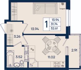 1 комнатная квартира 32.61 м² с ремонтом, на 8 этаже в жилом комплексе "Дом 101". ЖК Дом 101 - это уникальное пространство на территории 101 га. Парк 20 га с спортивными площадками и амфитеатром. Школа на 1725 мест и пять детских садов. Благоустроенные дворовые территории с детскими площадками и зонами отдыха создают комфортную среду для семей. 1020