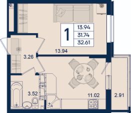 1 комнатная квартира с ремонтом 32.61 м², на 9 этаже в жилом комплексе "Дом 101". ЖК Дом 101 - это уникальное пространство на территории 101 га. Парк 20 га с спортивными площадками и амфитеатром. Школа на 1725 мест и пять детских садов. Благоустроенные дворовые территории с детскими площадками и зонами отдыха создают комфортную среду для семей. 160