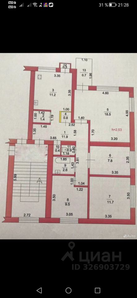 Продаётся уютная четырёхкомнатная квартира в тихом районе. Общая площадь — 76.9 кв. м, жилая — 47.5 кв. м. Просторная кухня в 11.2 кв. м отлично подойдёт для семейных ужинов. Квартира расположена на 3 этаже трёхэтажного дома. Высота потолков — 2.5 метра, окна выходят во двор, что обеспечивает тишину и спокойствие.
