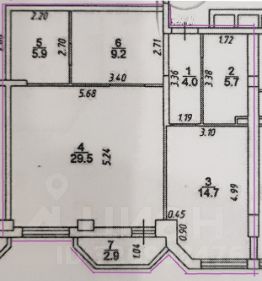 Прекрасный жилой объем, h-3 метра, планировка с гардеробной 6, комната 29.5, кухня 14.7, коридор 9, санузел 5.7, балкона н/з, выход из комнаты; открытый вид на Кубанскую Набережную.