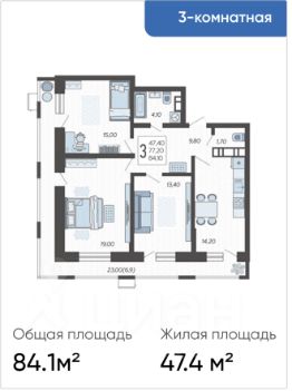 Квартира площадью 78 кв. м. плюс лоджия 22 кв. м.