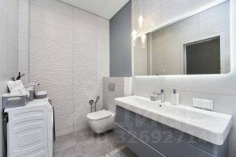 Ванная комнаты оформлена в едином стилевом решении с использованием качественной сантехники и современных отделочных материалов.