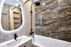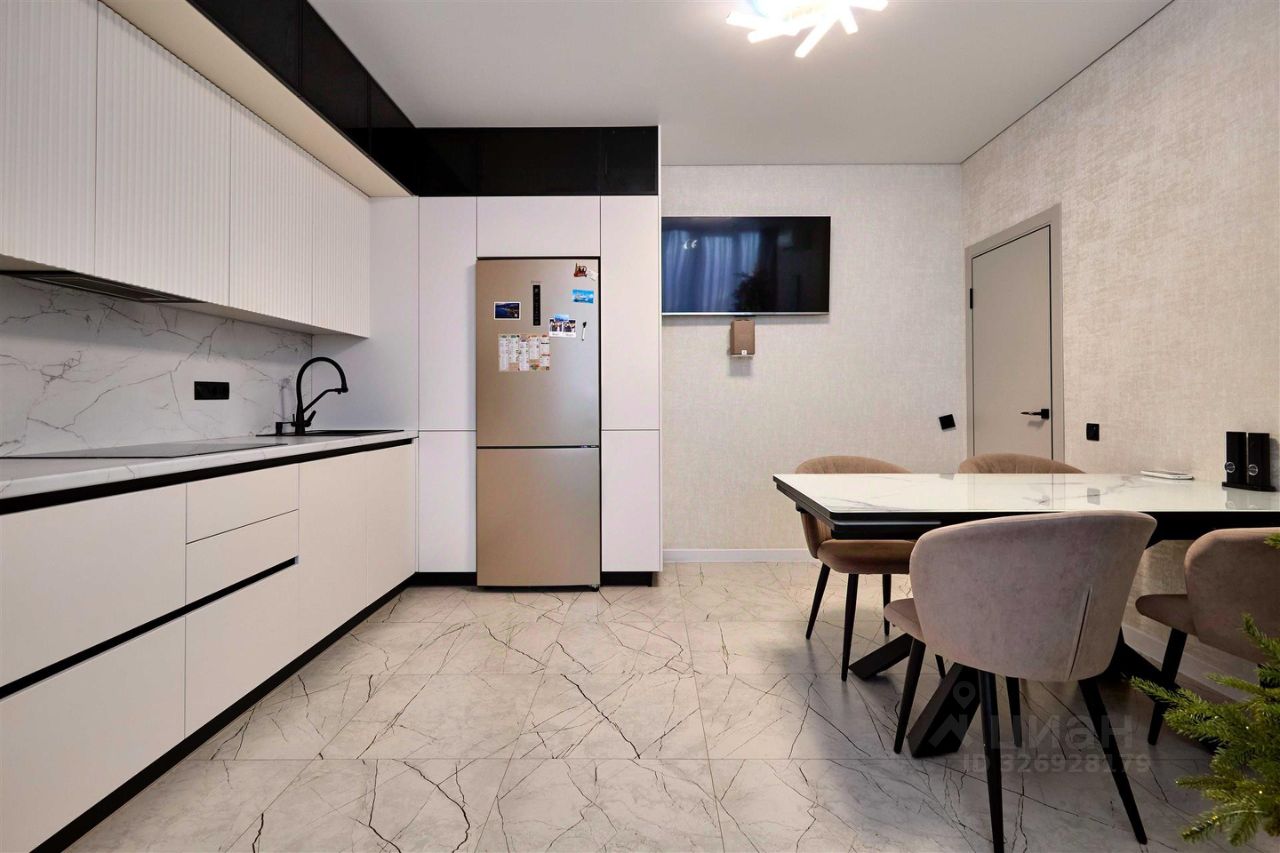 В квартире сделан стильный ремонт, который придаёт ей современный и элегантный вид. Пространство обустроено с умом, поэтому все элементы интерьера гармонично сочетаются друг с другом. В квартире есть всё необходимое для комфортного проживания: встроенная кухня, современная бытовая техника и мебель. Санузел выполнен в светлых тонах с качественной сантехникой и электрическим бойлером. Панорамная лоджия открывает потрясающий вид на прогулочную аллею.