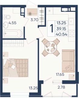 1 комнатная квартира с ремонтом 40.54 м², на 5 этаже в жилом комплексе "Дом 101".