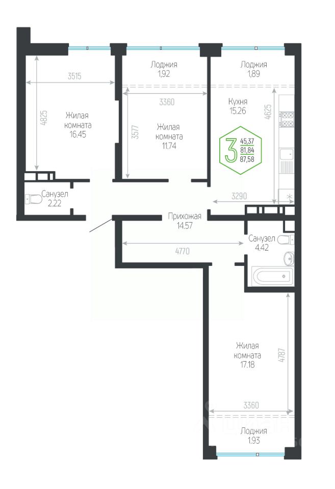 Продаётся 3-комнатная квартира в сданном доме (Дом 132/1 Корпус 5), срок сдачи: IV-кв. 2023, общей площадью 87.58 кв.м., на 13 этаже. Новый жилой комплекс "Гарантия на Обрывной" от застройщика "Гарантия" расположен по адресу город Краснодар, Обрывная улица.