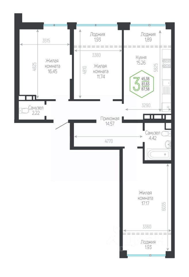 Продаётся 3-комнатная квартира в сданном доме (Дом 132/1 Корпус 5), срок сдачи: IV-кв. 2023, общей площадью 87.58 кв.м., на 13 этаже. Новый жилой комплекс "Гарантия на Обрывной" от застройщика "Гарантия" расположен по адресу город Краснодар, Обрывная улица.
