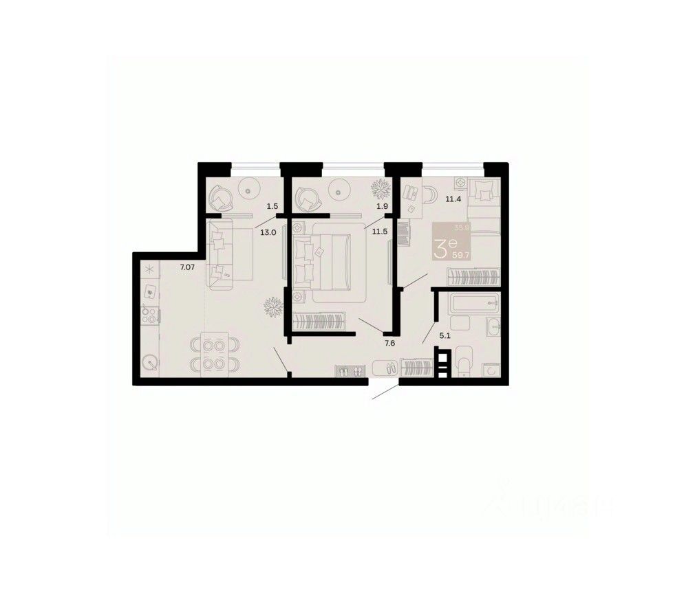 Общая площадь59,7 м²