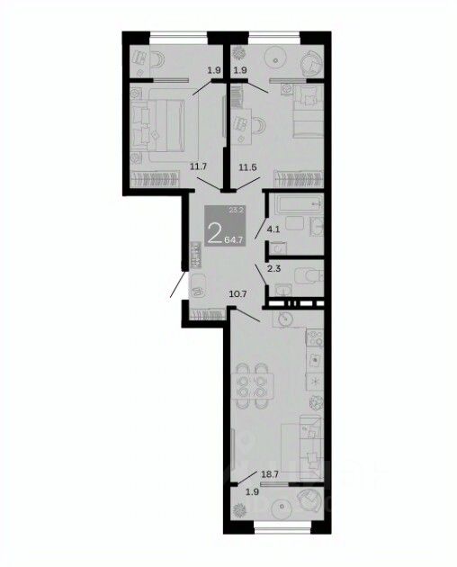 Общая площадь64,7 м²