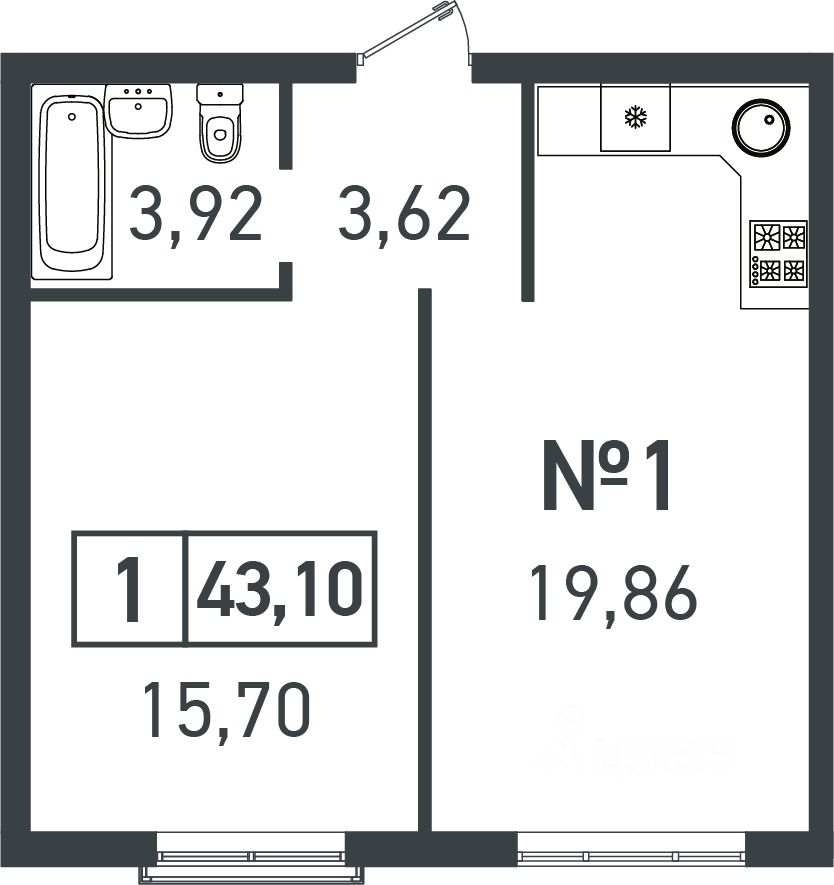 Общая площадь43,1 м²