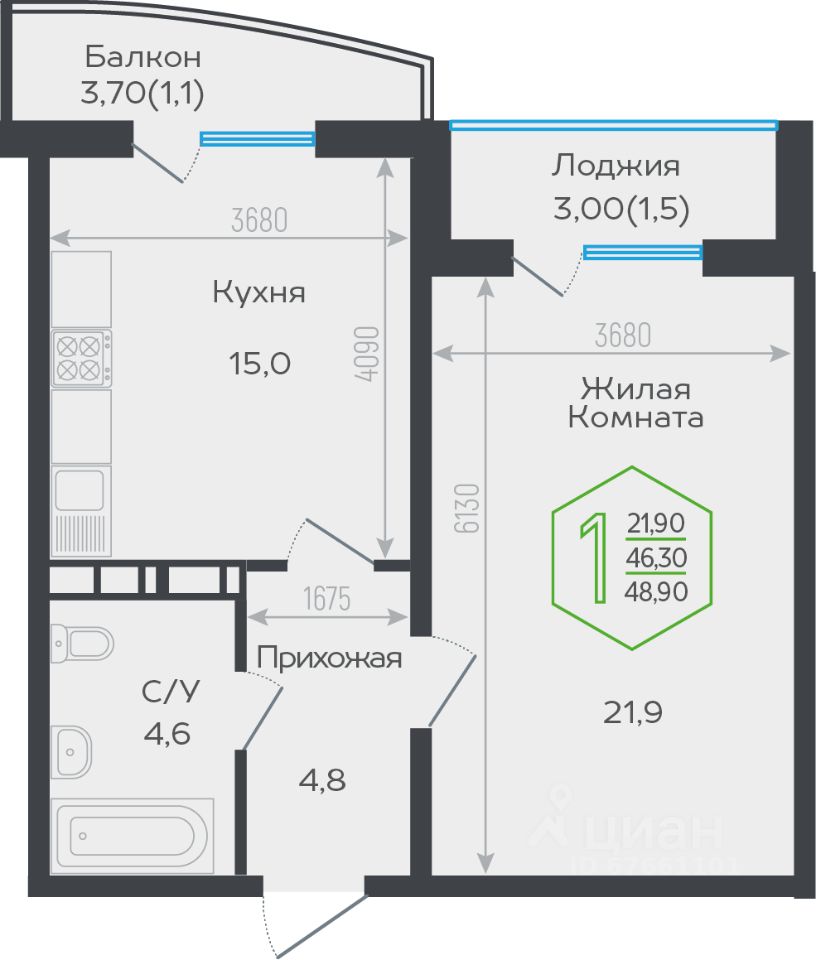 Продаётся 1-комнатная квартира в сданном доме (Обрывная 22/1), срок сдачи: II-кв. 2024, общей площадью 47.2 кв.м., на 3 этаже. Новый жилой комплекс "Гарантия на Обрывной" от застройщика "Гарантия" расположен по адресу город Краснодар, Обрывная улица.