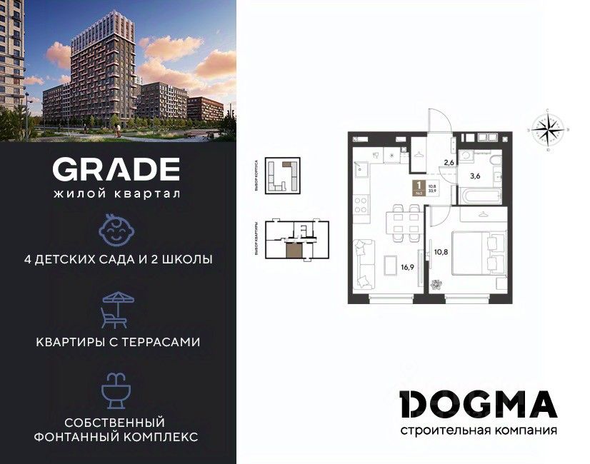 В продаже 1-комнатная квартира от застройщика! ЖК GRADE г. Краснодар, Литер 15