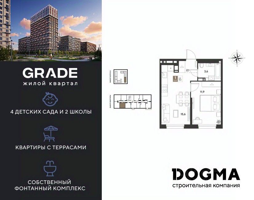 В продаже 1-комнатная квартира от застройщика! ЖК GRADE г. Краснодар, Литер 15