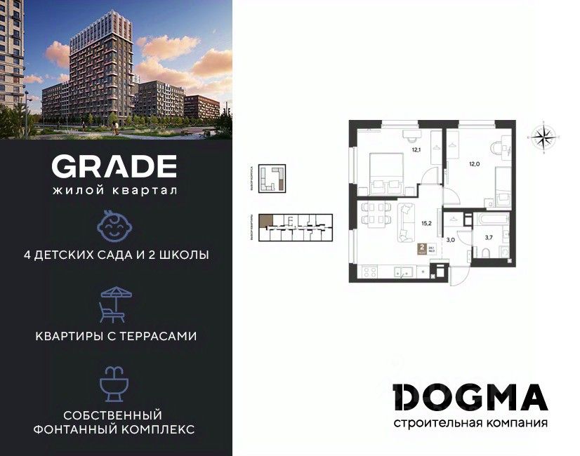 В продаже 2-комнатная квартира от застройщика! ЖК GRADE г. Краснодар, Литер 15