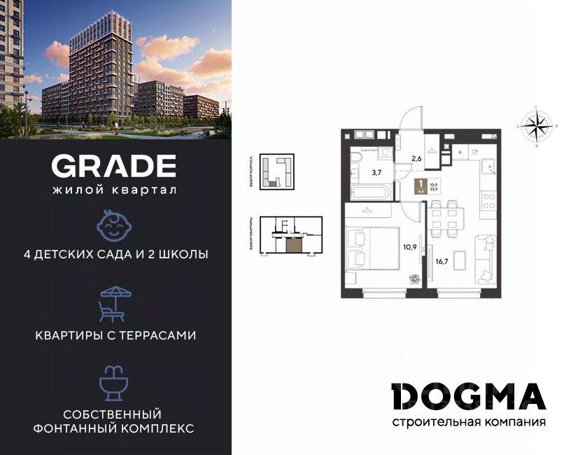 В продаже 1-комнатная квартира от застройщика! ЖК GRADE г. Краснодар, Литер 14