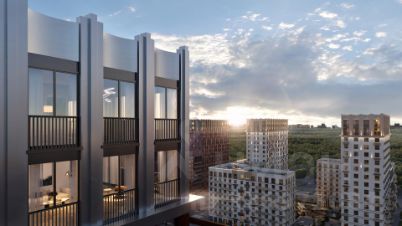 Квартал с переменной этажностью 9, 16 и 18 этажей предлагает полную инфраструктуру для жизни: 4 детских сада, 2 школы, поликлиника и ФОК расположены в шаговой доступности.
