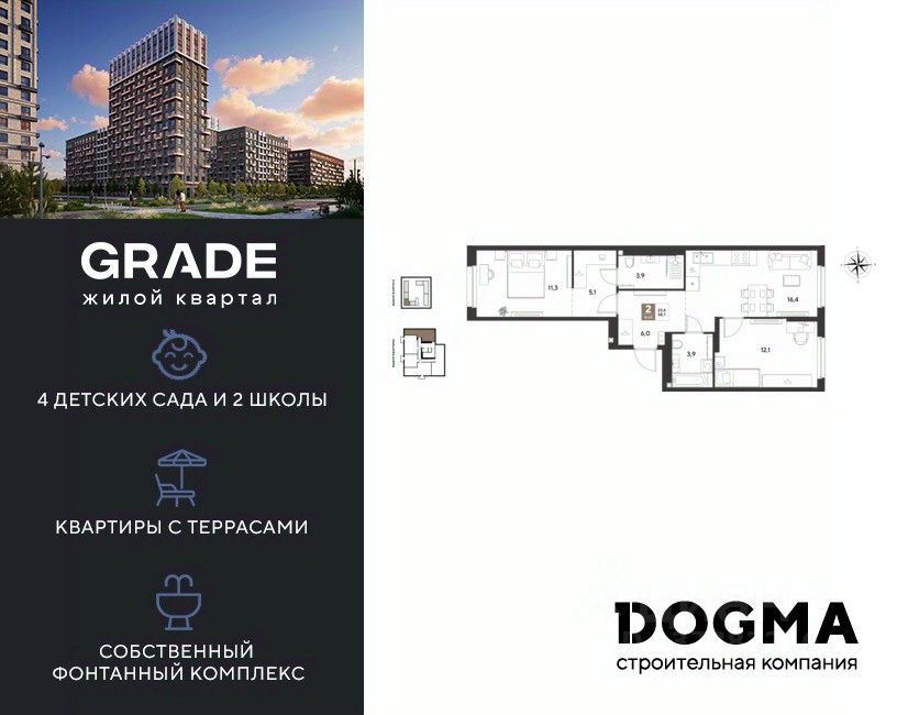 В продаже 2-комнатная квартира от застройщика! ЖК GRADE г. Краснодар, Литер 14