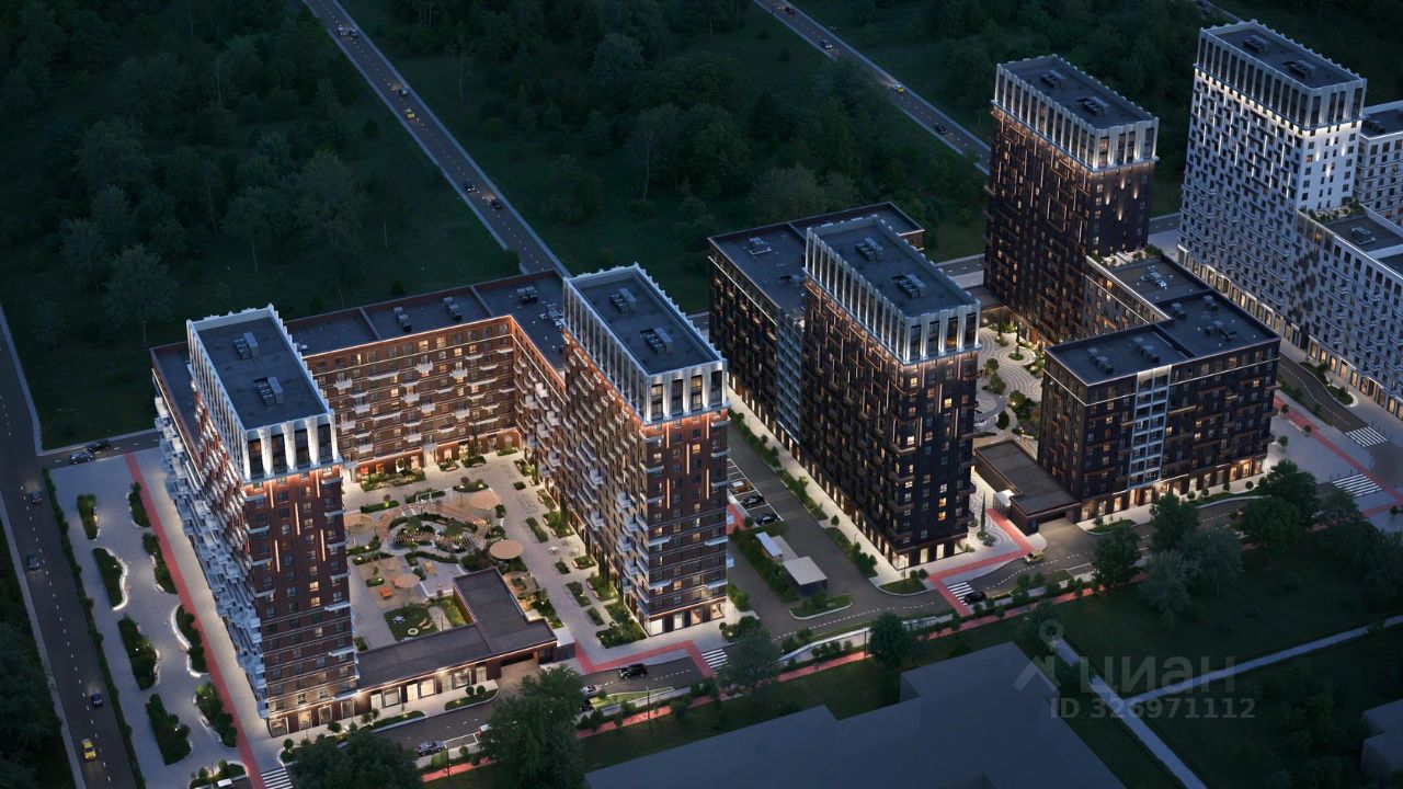 Квартал с переменной этажностью 9, 16 и 18 этажей предлагает полную инфраструктуру для жизни: 4 детских сада, 2 школы, поликлиника и ФОК расположены в шаговой доступности.