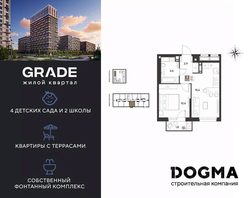 В продаже 1-комнатная квартира от застройщика! ЖК GRADE г. Краснодар, Литер 14