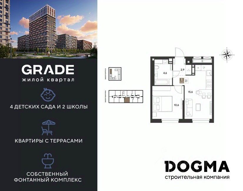 В продаже 1-комнатная квартира от застройщика! ЖК GRADE г. Краснодар, Литер 14
