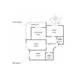 Просторная трехкомнатная квартира на среднем этаже предлагает рациональную и комфортную планировку с тремя отдельными комнатами и кухней-гостиной.