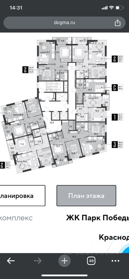 62,4 м²