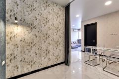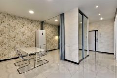 Везде лежит крупноформатный керамогранит, в зонах холода теплые полы, обои италия, бесшумная вытяжная вентиляция S&Р италия, входная дверь с 3х контурной теплоизоляцией, межкомнатные двери 2,3м с фурнитурой РRОFIL DООRS/