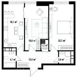 - площадь кухни-гостиной 19 кв.м., изолированные комнаты 20 кв.м. и 23 кв.м. с панорамным остеклением