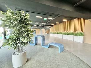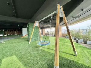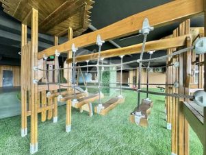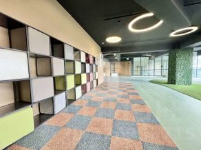 - PLAY-ZONE на 3 этаже с уличной температурой и возможностью гулять в любую погоду. Игровые площадки, спортивные тренажеры, скалодром, зоны для занятия йогой, гамаки, кинозал, питьевые фонтаны