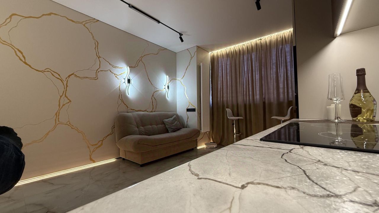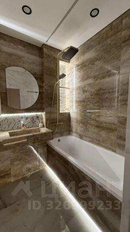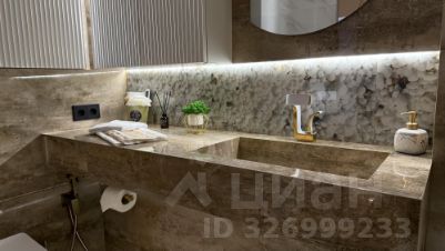 В ванной теплая стена для полотенец,проточный водонагреватель.Все смесители европейские.Индивидуальная раковина с переходом в столешницу,из керамогранита толщиной10мм(Турция).В душевой зоне ниши.Встроены подсветки.Сенсорное зеркало.Толстостенная акриловая ванна75х170см.Сенсорная стирально-сушильная машина Gressel на10,5кг.Инсталляция,гигиенический душ