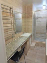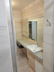 Теплосчетчик на отопление, регуляторы температуры в каждом помещении (индивидуальный расчет потребления тепла, что значительно снижает расходы на отопление), индивидуальная система разводки по квартире (общие стояки в подъезде). На балконах заменено остекление, на трехслойные энергосберегающие пакеты. Балкон из кухни утеплен (стены, пол, потолок), для любителей кофе отдельный плюс широкоформатная столешница-подоконник. В ванной комнате теплый пол и "парящее" зеркало с подсветкой, проточный водонагреватель, душевая зона и ванна, широкая столешница, есть место для установки шкафа. Встроенная система хранения в прихожей и в туалете (габариты под стандарт IKEA). В комнатах и на кухне установлены сплит-системы.
