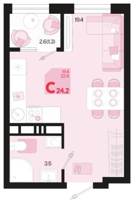Продаётся 1-комнатная квартира в строящемся доме (Квартал 1.10 - Литер 1), срок сдачи: III-кв. 2026, общей площадью 24.2 кв.м., на 9 этаже. Жилой район "Первое