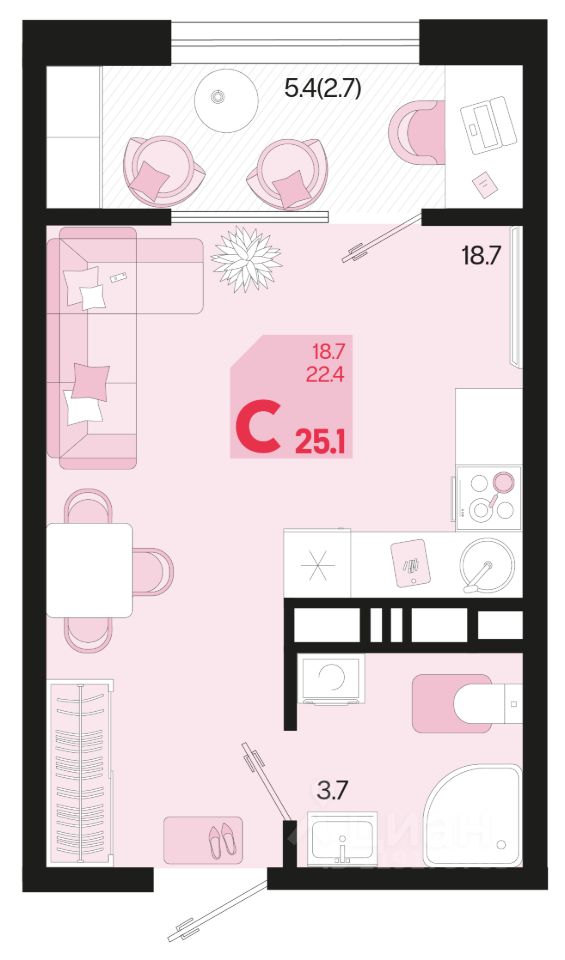 Продаётся 1-комнатная квартира в строящемся доме (Квартал 1.1 - Литер 2), срок сдачи: II-кв. 2026, общей площадью 25.1 кв.м., на 13 этаже. Жилой район "Первое