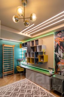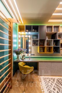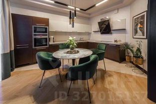 Встроенная мебель выполнена на заказ у премиального бренда Mr. doors: гардеробные комнаты, продуманные системы хранения. Кухня из деревянного шпона с каменной столешницей, встроенная техника. Домашний кинотеатр и качественная аудиосистема.