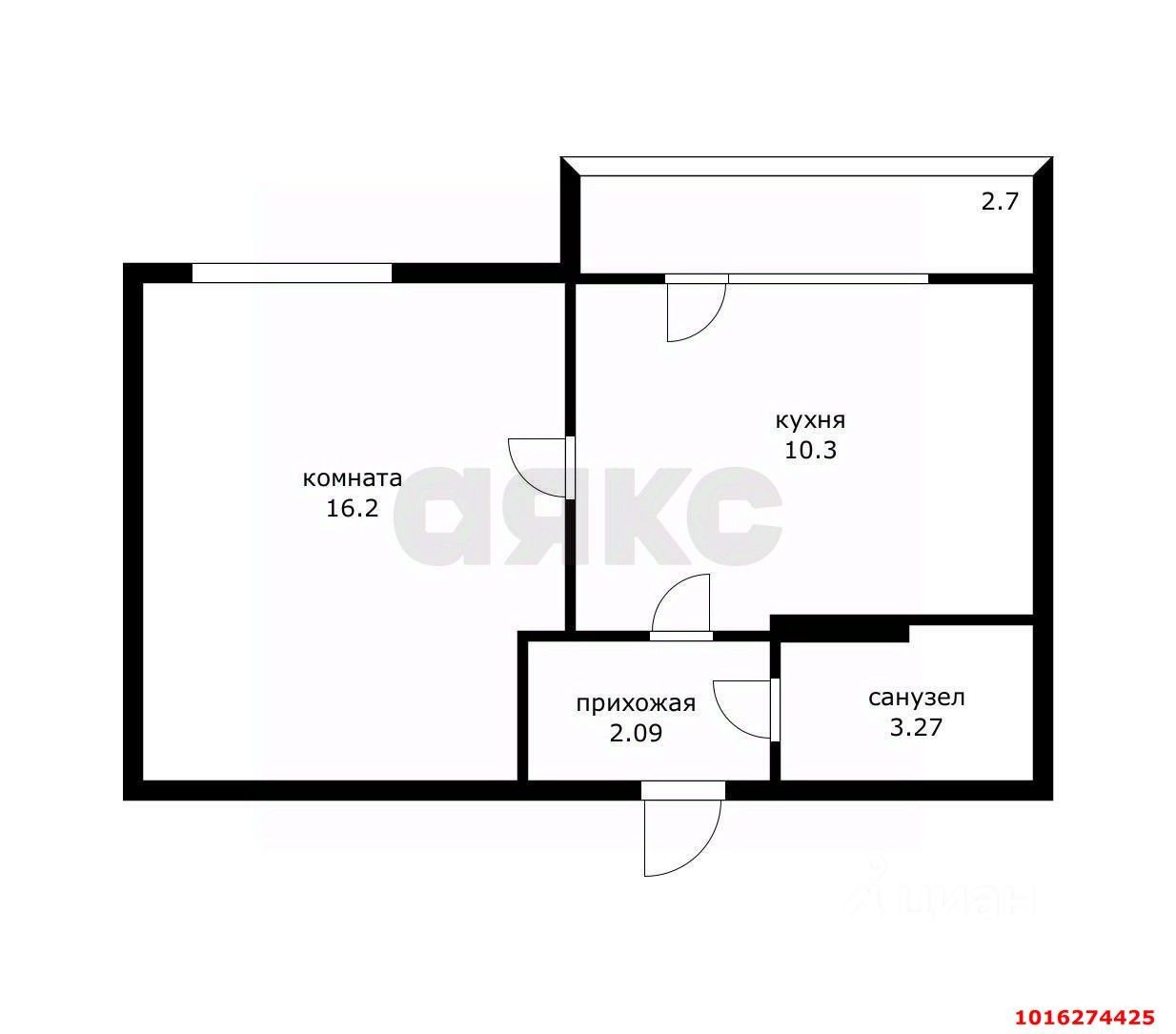 кухня с выходом на лоджию 12м2, спальня 16м2, совмещенный санузел.