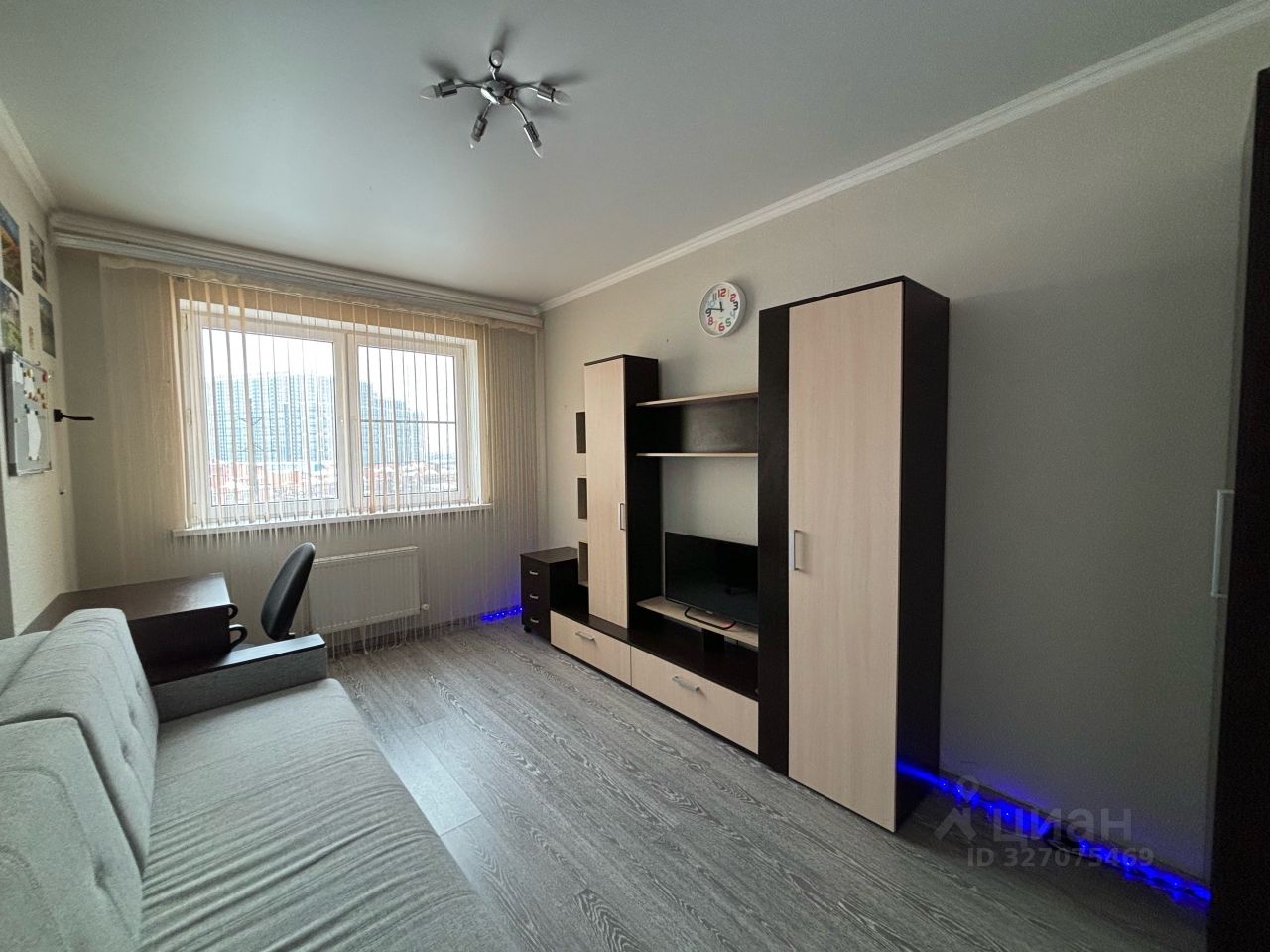 В комнате и коридоре установлен ламинат, на стенах -обои.