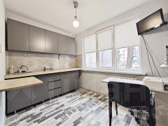 Улучшенная планировка с большой комнатой 18 м, кухней 7,5 м и просторным совмещённым санузлом. В квартире сделан современный ремонт: на полах ламинат комбинированного цвета, натяжные потолки во всех помещениях.