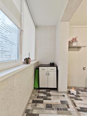 На кухне установлен новый кухонный гарнитур, стол, подвесной телевизор; в комнате раскладной диван; в санузле вмонтирована совершенно новая стиральная машина; встроенный гардероб в прихожей.