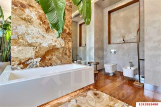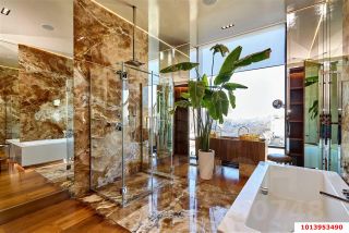 К примеру техника на обоих кухнях в полном комплекте от фирмы Miele, включая 2 кофемашины, итальянская мебель и двери- Lualdi, сидения с душем в с/у от фирмы Duravit, музыка по всей квартире и на террасе встроенная в стены и потолки от фирмы Bose, также в отделке использованы натуральные камни и дерево. Не стану тут все перечислять, лучше все увидеть самим.