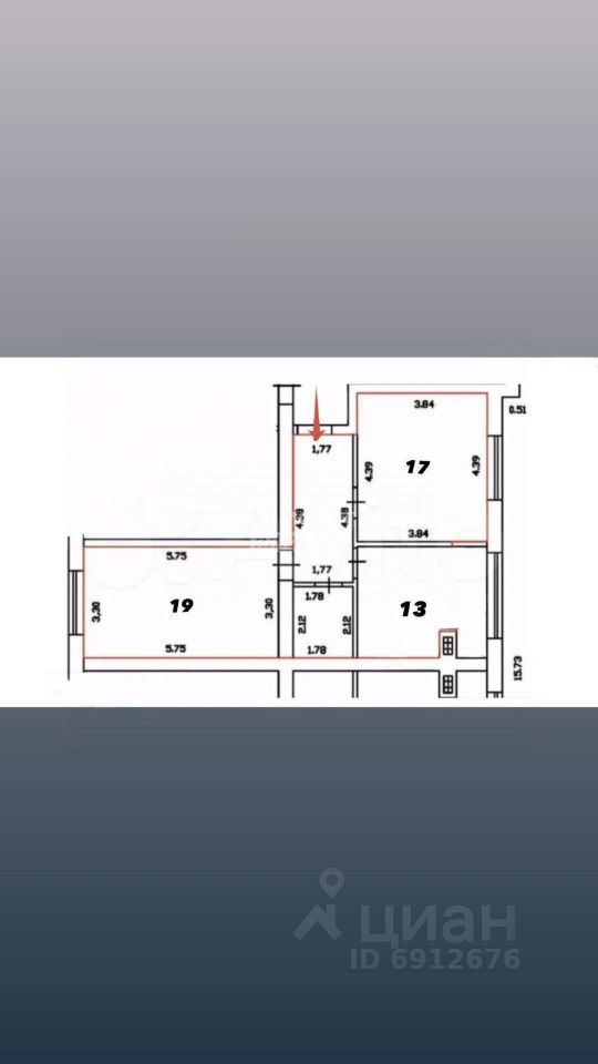 две большие КОМНАТЫ по 17 и 19м2;